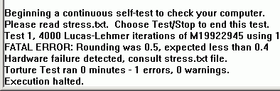Niezawodność działania mikroprocesora, płyty głównej, pamięci i chłodzenia można zweryfikować uruchamiając program wykonujący bardzo intensywne obliczenia o znanym wyniku. Dzięki porównywaniu wartości oczekiwanej i wyliczonej można stwierdzić, czy w czasie obliczeń nastąpiło przekłamanie danych. Z kolei pełne obciążenie komputera może uprościć ujawnienie się problemów z zasilaniem lub chłodzeniem.