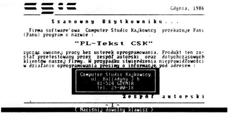 W czasie, gdy Cay Horstmann przygotowywał swoje dzieło do sprzedaży, dostępny był już edytor tekstu stworzony od podstaw z myślą o polskim użytkowniku. PL-Tekst powstał w Gdyni pod szyldem przedsiębiorstwa Computer Studio Kajkowscy i ujrzał światło dzienne pod koniec 1985 roku, a już rok później można było kupić wersję 2.2.