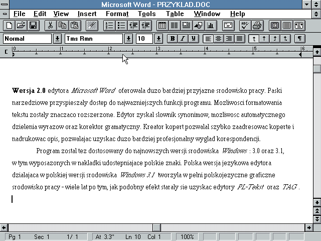 Polscy użytkownicy nie musieli dłużej czekać. Wielu z nich miało już komputery, które w mniej lub bardziej komfortowy sposób mogły działać w środowisku Windows 3.1, a Word 2.0 dawał im dużo więcej, niż wszystkie wcześniejsze aplikacje. Potrafił łączyć tekst z grafiką, automatyzować dokumenty, tworzyć tabele, osadzać schematy, diagramy i szkice, oraz automatycznie opracowywać spisy treści, ilustracji i tabel. Obsługiwał też tworzenie obszernych dokumentów na bazie wielu mniejszych, a także korespondencję seryjną. I co z tego, że drukował w trybie graficznym, a więc równie wolno, co ChiWriter, skoro na wydruku mogły pojawiać się proporcjonalne czcionki dowolnego kroju i stopnia, a także – widoczne bezpośrednio na ekranie, bez konieczności zgadywania ich położenia i rozmiaru – obrazy. Tam, gdzie ChiWriter i TAG starały się przybliżyć ideę WYSIWYG, Word for Windows realizował ją w praktyce.